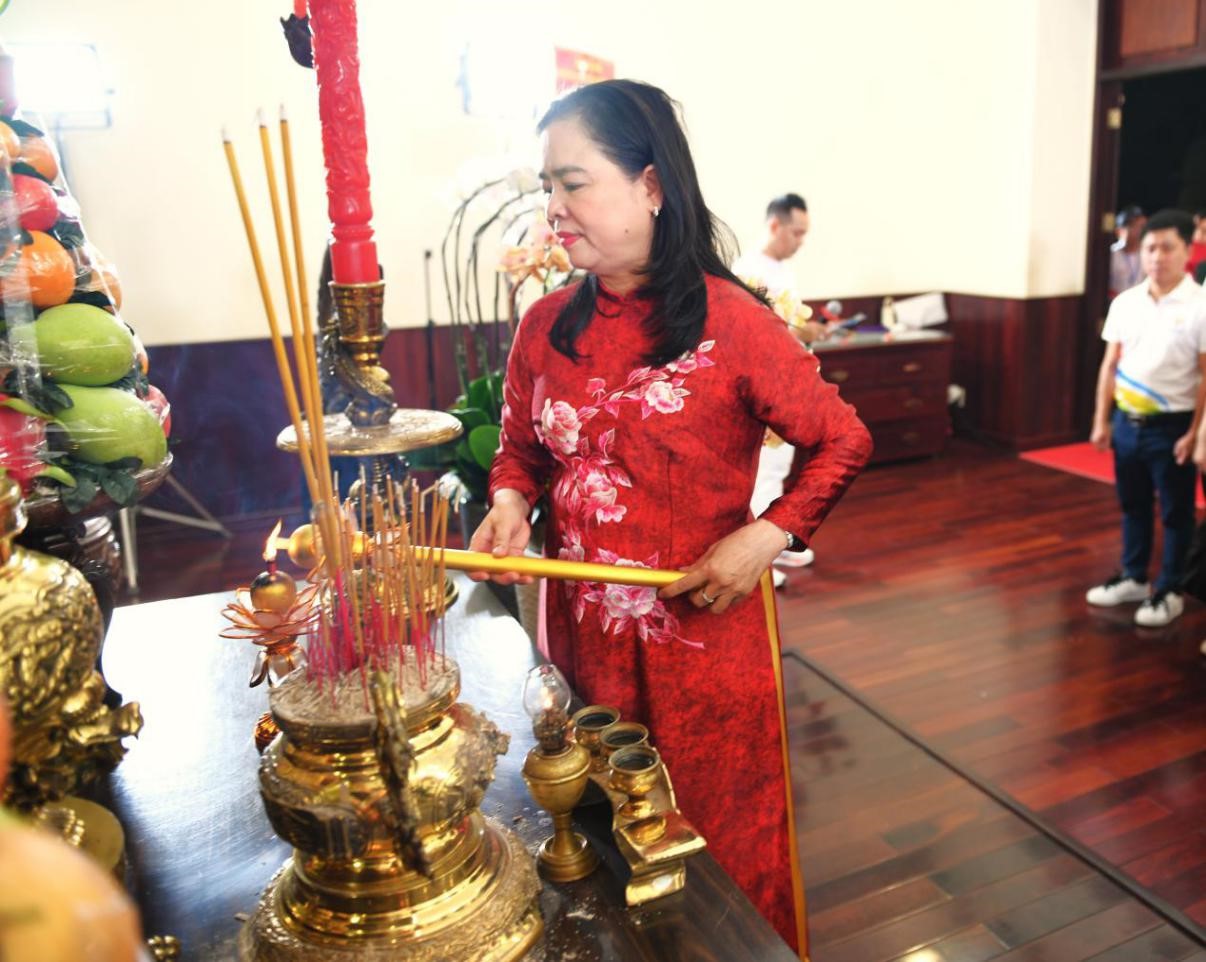 Đồng chí Lưu Thị Tuyết Trinh - Giám đốc Bảo tàng Hồ Chí Minh - chi nhánh Thành phố Hồ Chí Minh thực hiện nghi thức xin lửa thiêng trên bàn thờ Bác.