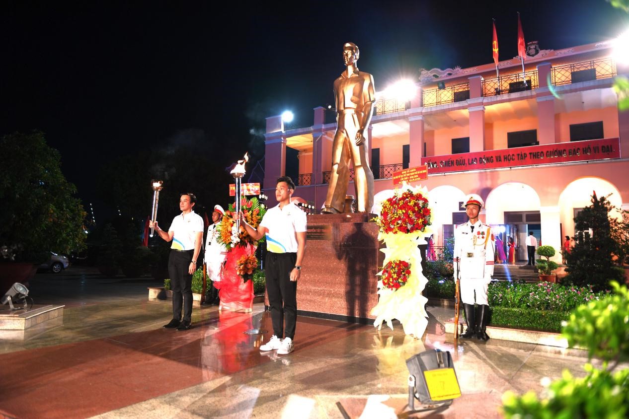 Đồng chí Nguyễn Nam Nhân và Võ sĩ Nguyễn Tấn Sang thực hiện nghi thức rước đuốc.